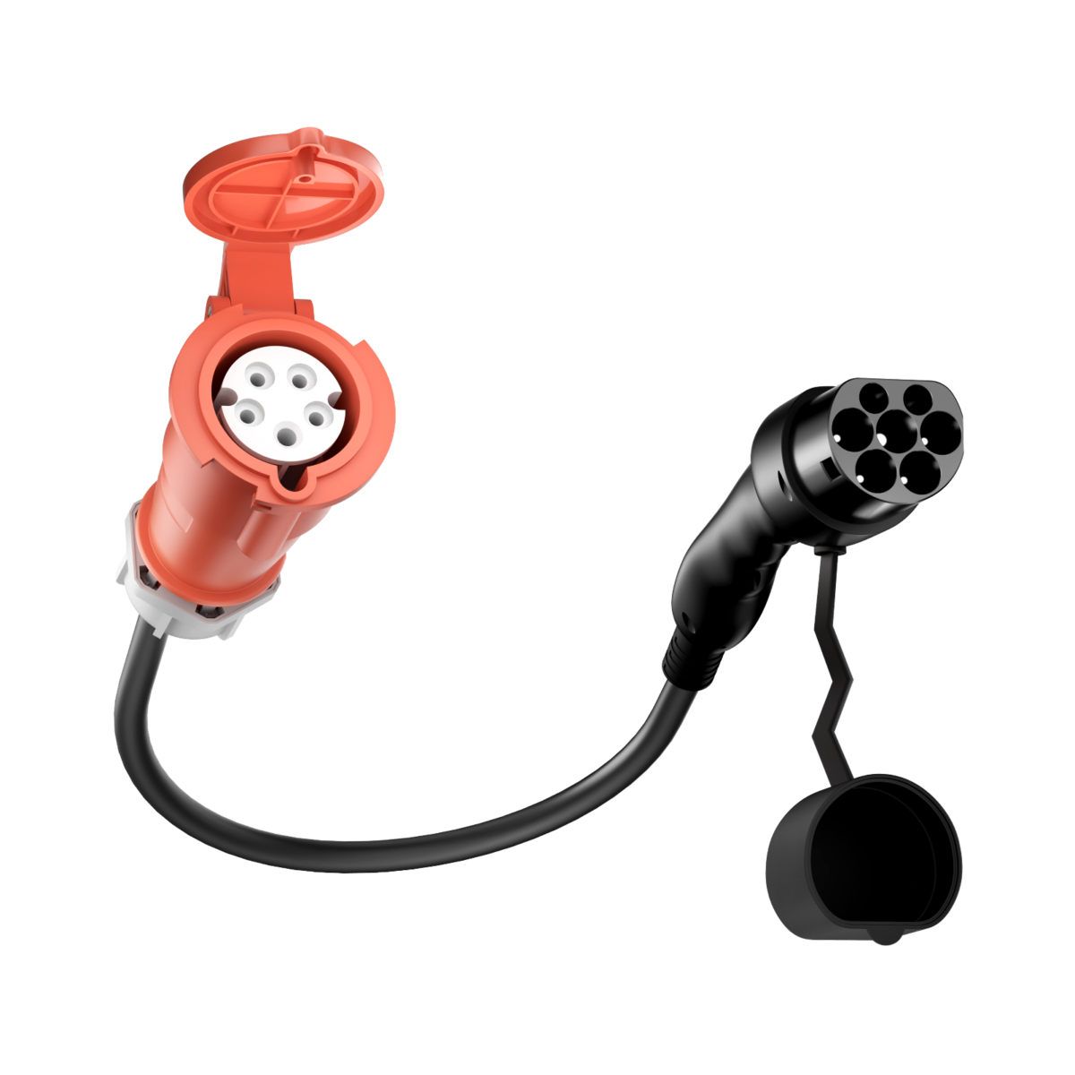 De adapter kan worden gebruikt om verbinding te maken met de Type 2-aansluiting op het laadstation en het uiteinde van de adapter te gebruiken als rode CEE 16A-aansluiting voor maximaal 11 kW.